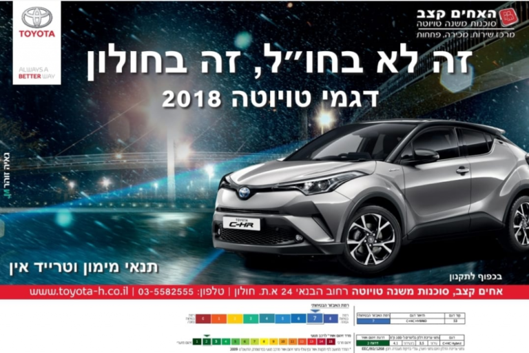 זה בדיוק מה שעשינו כאשר סוכנות מורשית טויוטה, סניף חולון, פנו אלינו בבקשה לעשות קמפיין אודות דגמי טויוטה החדשים שהגיעו. במקרה זה דאגנו לפריסת פרסומים בחולון ובת-ים, במדיות בהן יש סיכוי מאוד גבוה שנמצא את הלקוחות הפוטנציאלים. יצרנו משחק מילים בקריאטיב, על מנת למשוך כמה שיותר חשיפה והתעניינות והקמפיין זכה להצלחה גדולה.