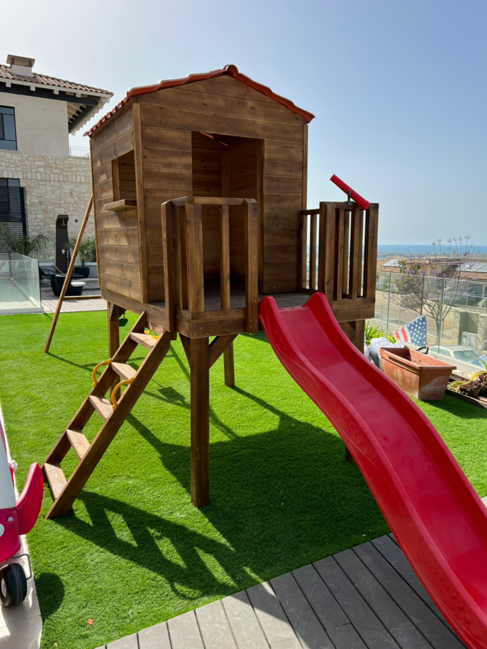 בית עץ לילדים מחזיק שנים ארוכות ויכול לשמש כל אחד מילדי המשפחה בתורו, ועל כן, כדאי להתאים אותו לתנאי המרחב שלכם ולמקמו במקום מוצל, כדי שהשמש לא תגרום לצבע לדהות ולא תפגע בעץ.”