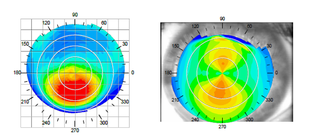 - מיפוי קרנית קדמי ואחורי – במיפוי משטח הקרנית נוכל לזהות את הצורה הקונוסית במקרה של קרטוקונוס
