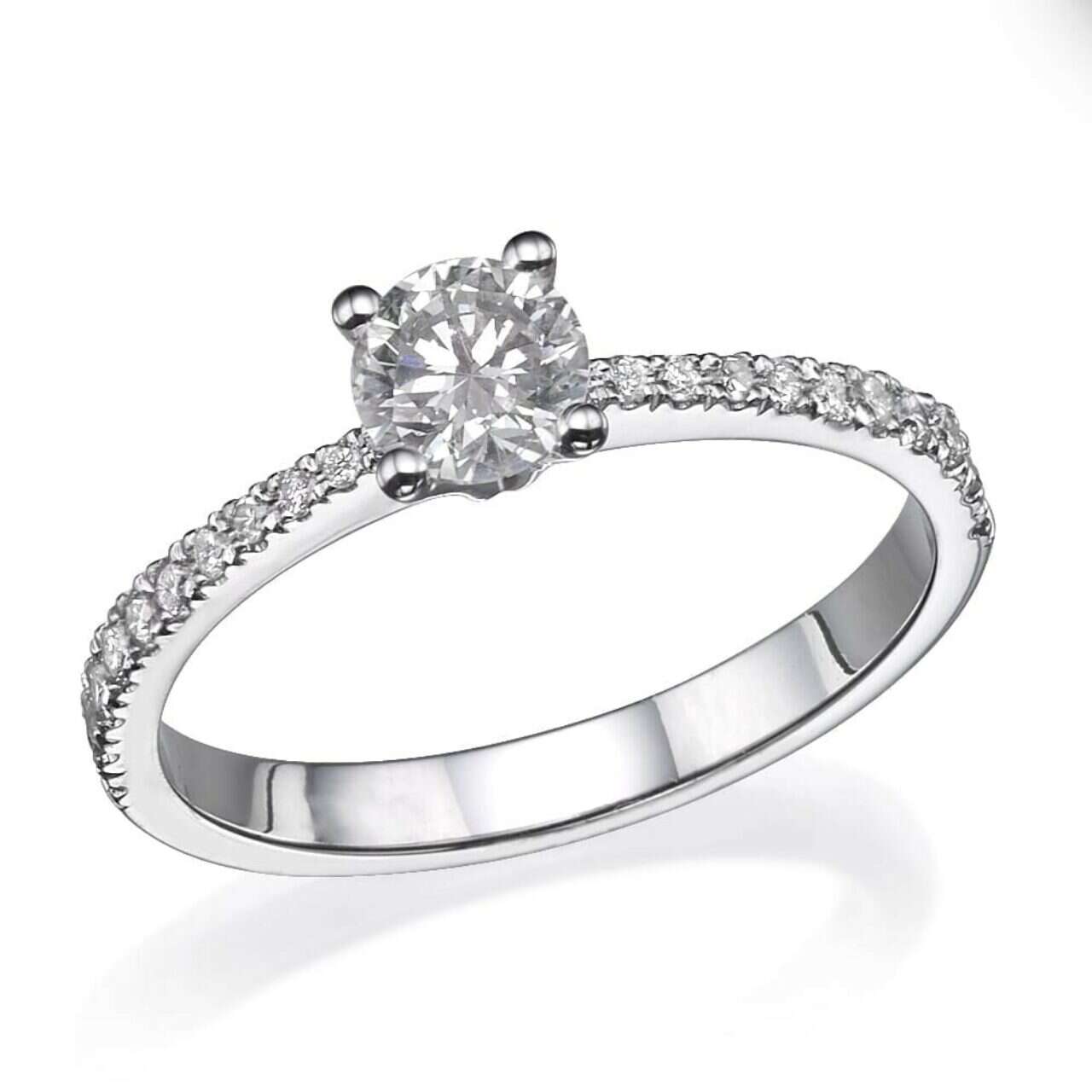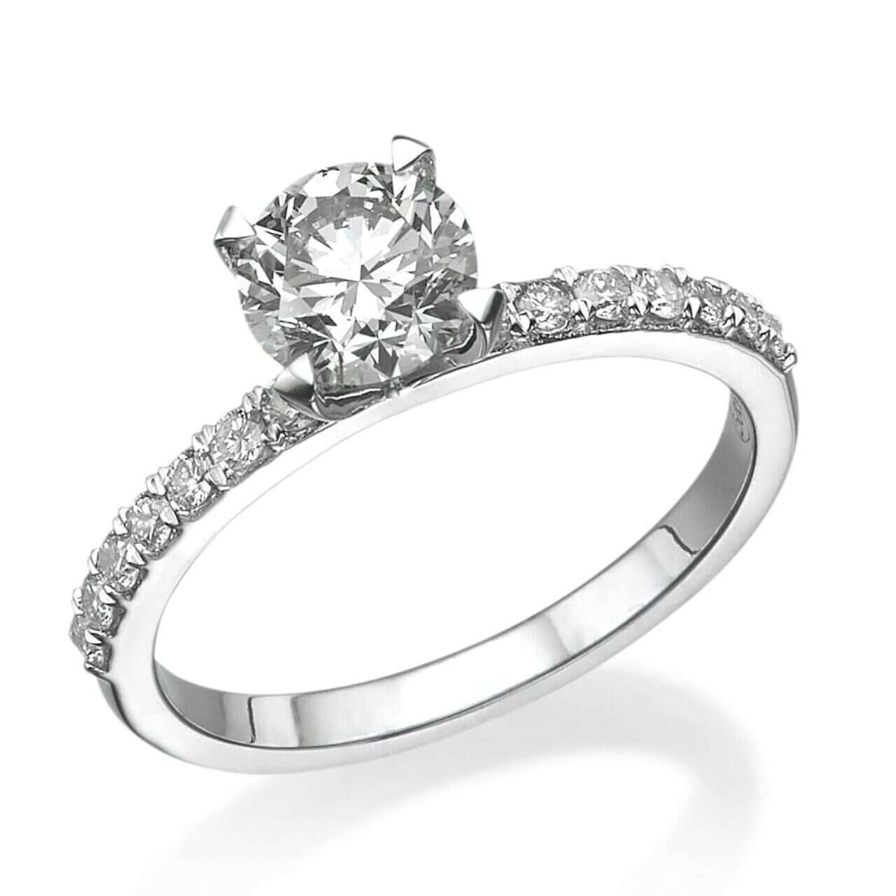 טבעת אירוסין Alisa – יהלום עגול 1 קראט ויהלומי צד