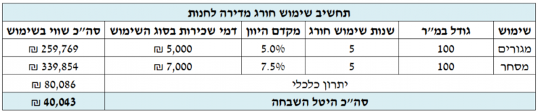 דוגמה לחישוב היטל השבחה בגין שימוש חורג: