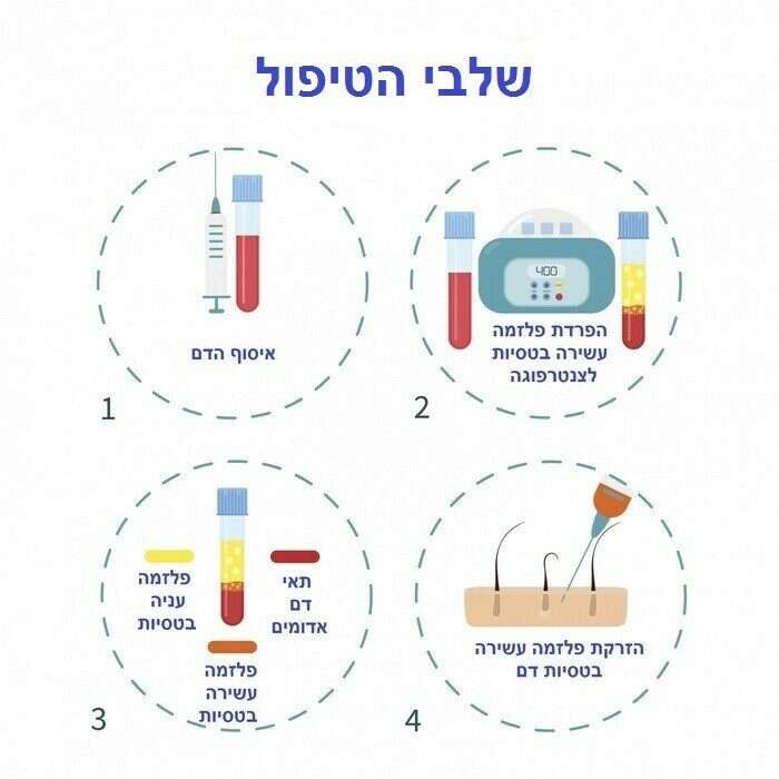 טיפול PRP לשיער, מבוסס על פלזמה המופקת מדם המטופל/ת. ריכוזם של חומרי הגדילה בפלזמה, גדול פי 4-7 מריכוזם הרגיל בדם. טסיות הדם אחראיות על קרישיות הדם ולהן תפקיד קריטי בהליכי ריפוי והחלמה של רקמות הגוף השונות. הזרקתם של חומרים אלו ישירות אל האזורים הדלילים בשיער בקרקפת, עוצרת את הנשירה, מחזקת את שורשי השיער ומחדשת צמיחת זקיקים רדומים.