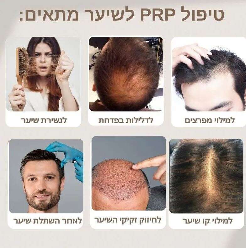 - שיער הזקוק לשיקום – בעלי מבנה שיער דק, חלש, שבור, בעל שיער עם צמיחה איטית או שיער שנפגע כתוצאה מפרוצדורות כימיות. טיפול PRP לשיער, אידיאלי במצבים אלו שכן הטיפול מחזק ומשקם את שורשי השיער.