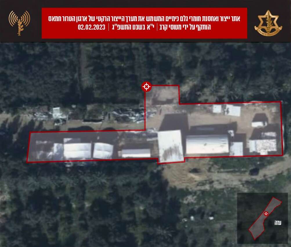 מדובר צה"ל נמסר כי מטוסי קרב תקפו אתר ייצור ואחסנת חומרי גלם כימיים, המשמש את מערך הייצור הרקטי של ארגון הטרור חמאס. נוסף על כך, אתר לייצור אמצעי לחימה, הממוקמים שניהם במרכז רצועת עזה.