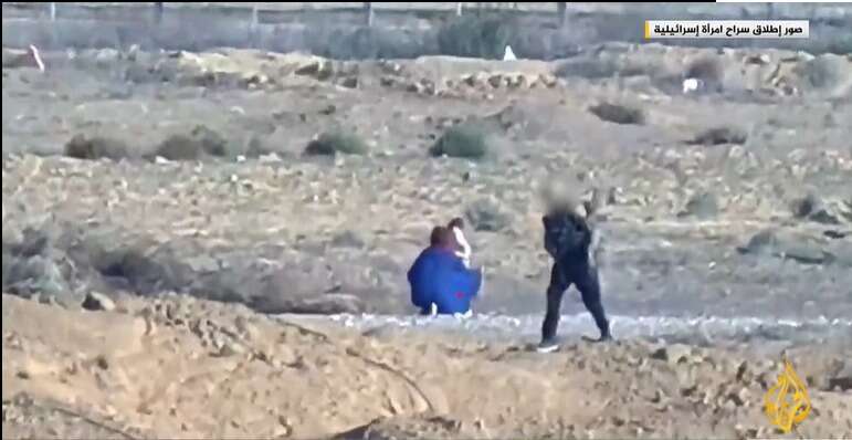 בווידאו ששחרר חמאס לרשת אל-ג'זירה הלילה (רביעי) נראה שחרור כביכול של אם ושני ילדיה באזור חולית. זאת כחלק ממאמצי ההסברה של חמאס להפחית מעוצמת הזוועות ולהעביר מסר שקרי שאנשיהם "לא רוצחים נשים וילדים".
