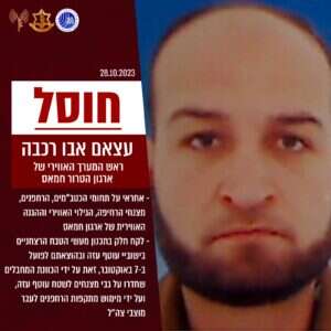 במסגרת תפקידו לקח חלק בתכנון ובהוצאה לפועל של הטבח הרצחני ביישובי עוטף עזה בשבעה באוקטובר. זאת על ידי הכוונת המחבלים שחדרו על גביי מצנחים לשטח עוטף עזה ובאמצעות מתקפות הרחפנים לעבר מוצבי צה"ל.