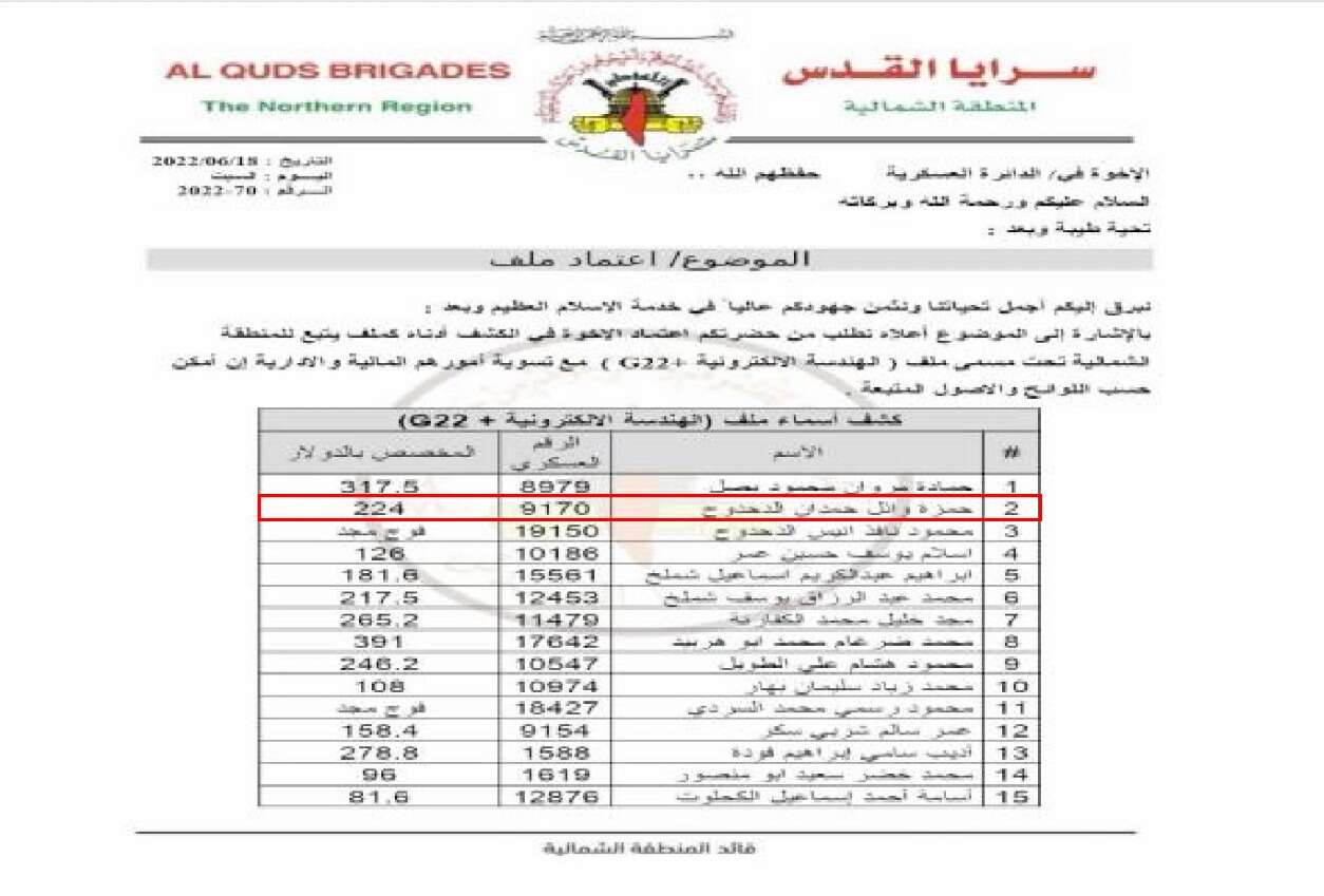 חמזה ואאל חמדאן אל-דחדוח שימש כפעיל בג'יהאד האסלאמי שביצע פעולות טרור נגד מדינת ישראל. במסמכים שאותרו על ידי כוחות צה"ל, הופיע שמו של אל-דחדוח ברשימה של פעילים מתחום ההנדסה האלקטרונית של ארגון הטרור. במסמכים הופיע גם כי בעבר הוא שימש כסגן מפקד מחלקה בגדוד זייתון בארגון, וכיום הוא אחראי גזרה ביחידה הרקטית של שלו.