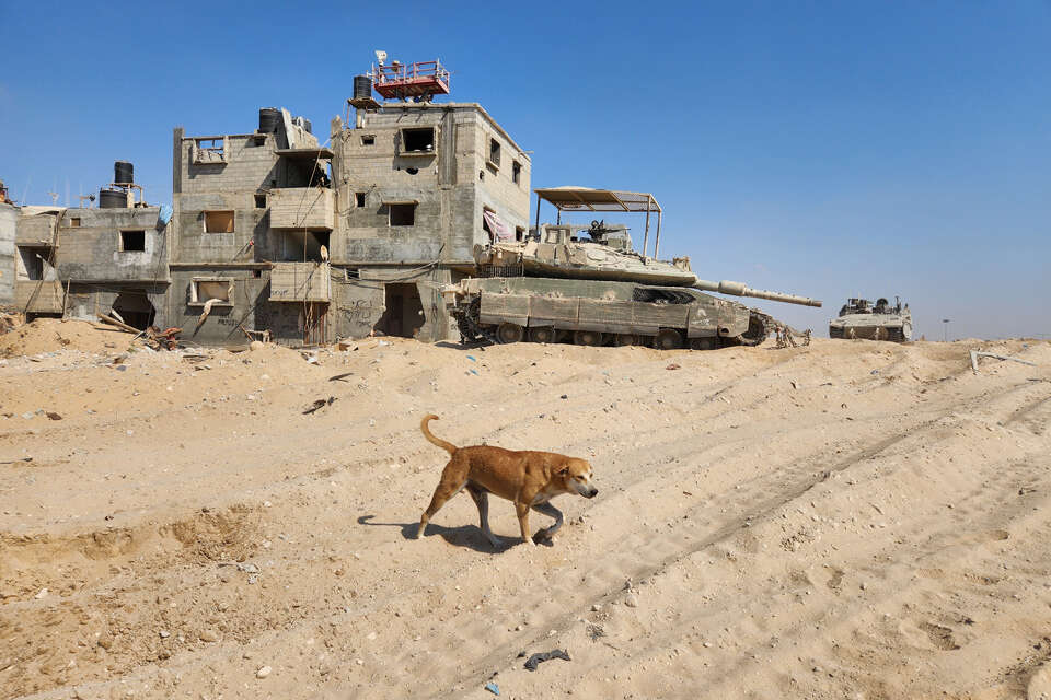 אנחנו מתקדמים מערבה לעבר הים. מימיננו רפיח החרבה, משמאלנו החומה שמפרידה בין רצועת עזה למצרים, ובשער נישא הדגל המצרי. בכל כמה קילומטרים נראות בבירור עמדות מאוישות בחיילים. צה"ל מקפיד על תיאום בין הצדדים כדי למנוע התנגשויות. דחפורים ומשאיות עמלים בלי הפסקה על הרחבת ציר פילדלפי. עמדות חמאס המנומרות ניצבות בצד, שבורות והרוסות. על אלו שלא קרסו מוצבים דגלי ישראל, מתנופפים ברוח.