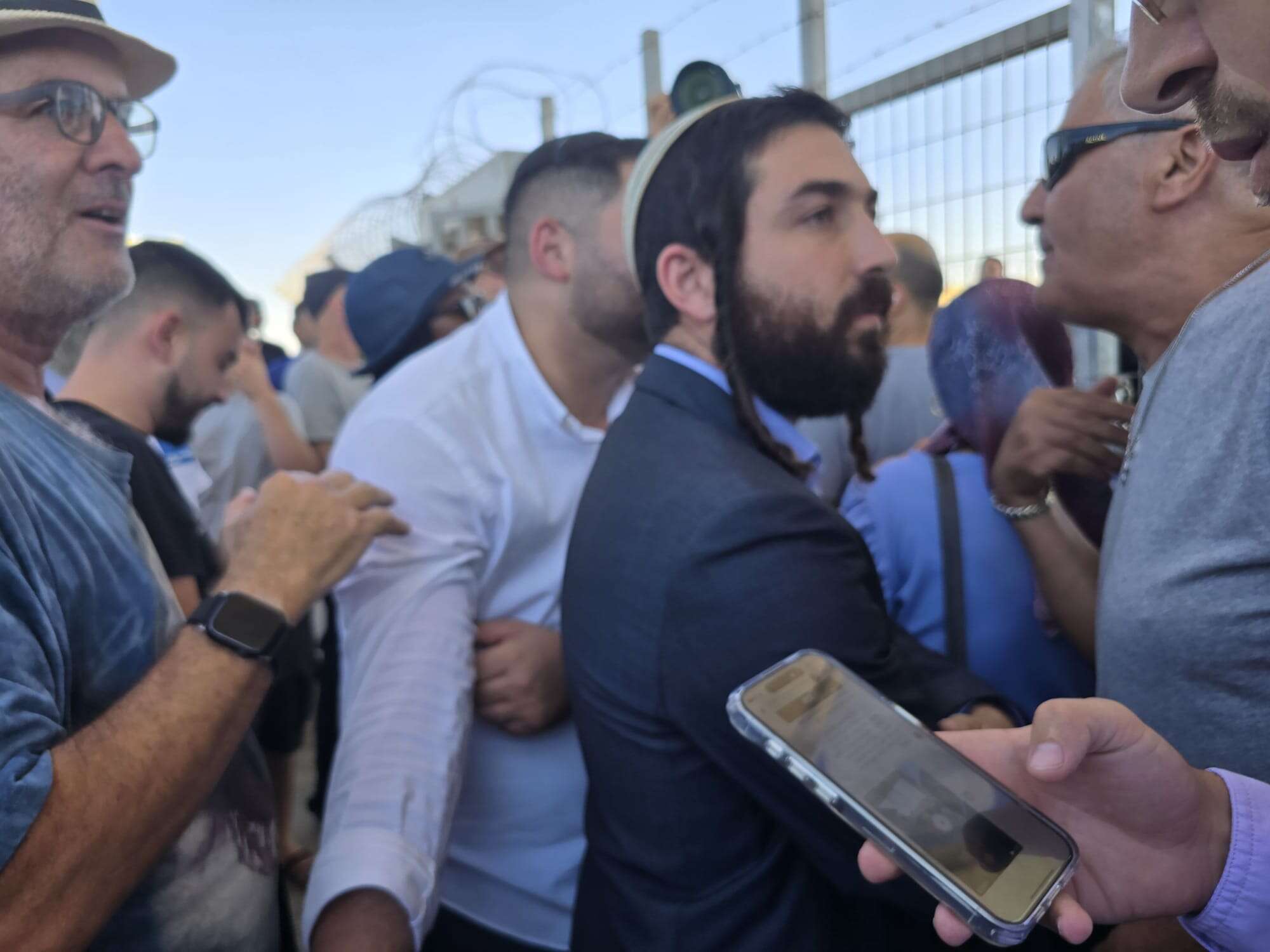 אחרי עיכוב החשודים, למקום הגיעו מפגינים ובהם חיילי מילואים, שחסמו את היציאה מהבסיס - ובהמשך פרצו את גדרותיו יחד עם חברי כנסת שהגיעו למקום. מהומות פרצו במקום. גם ח"כ צבי סוכות שלא הורשה להיכנס, נכנס מפתח צר בגדר. המוחים במקום קוראים: "מוות למחבלים" ו"מוות לבית המשפט".
