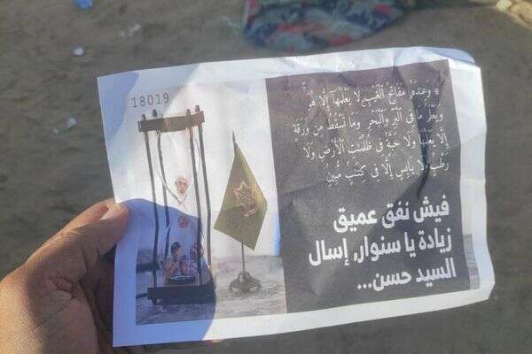 מתיעודים שהופצו ברשתות החברתיות, עולה כי בכרוזים נכתב: "אין מנהרה עמוקה מספיק, הוי סינוואר, תשאל את אדון חסן...". בכך התייחסו כותבי הכרוז לחיסול של מזכ"ל חיזבאללה חסן נסראללה, בבונקר תת-קרקעי בדאחייה של ביירות.
