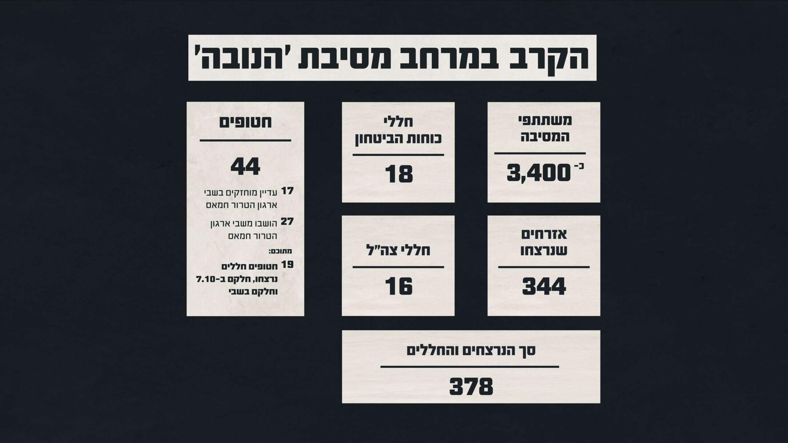 צה"ל מפרסם היום (חמישי) את מסקנות תחקיר הטבח במסיבת הנובה, ללא ספק אירוע הטרור החמור ביותר במדינת ישראל מאז הקמתה. המסקנות שהותרו לפרסום עוסקות בעיקר בסוגיות האישורים הביטחוניים שקיבלה המסיבה, ובכך שהאירועים וממדי האסון לא הגיעו לידיעת אוגדת עזה והחטיבה הצפונית שלה בזמן ובמרחב רלוונטיים, ושמכך גם לא לידי פיקוד הדרום וחטיבת המבצעים.