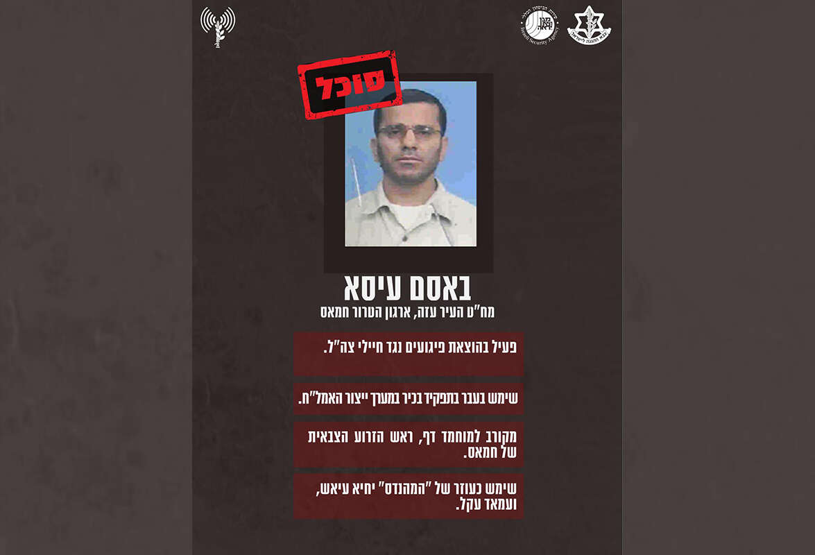 1. באסם עיסא - מח"ט העיר עזה. פעיל חמאס צבאי בכיר. מאז שנת 2017 ראש חטיבת חמאס עזה. היה מעורב לאורך השנים בפיגועים רבים וכן שימש כפעיל בכיר במערך הייצור של הארגון. מנהל את הפעלת הכוח בסבבי הלחימה מול ישראל. סיכולו ישפיע באופן משמעותי על תפקוד החטיבה והזרוע הצבאית של חמאס.
