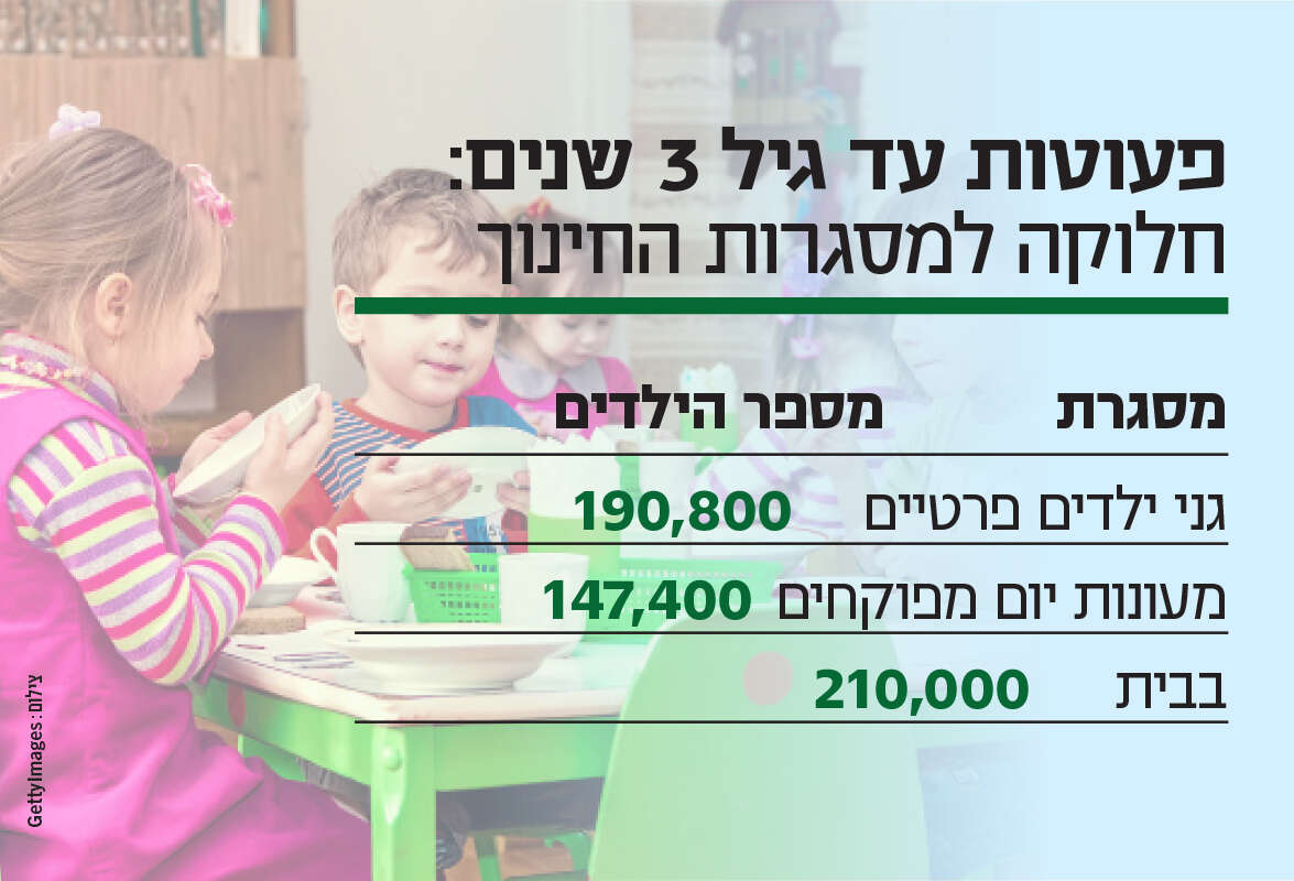 קשה לחשוב על תחום כה פרוץ ומופקר כמו החינוך עד גל 3. רשימת הבעיות ארוכה, וכוללת מחסור בכוח אדם ובתקציבים והזנחה של שנים. מתוך כ-548 אלף פעוטות עד גיל 3 בישראל - 35% שוהים במסגרות פרטיות, 27% במסגרות מפוקחות המסובסדות על ידי המדינה, ואילו 38% שוהים בבית עם הורה בחופשת לידה או עם מטפלת.