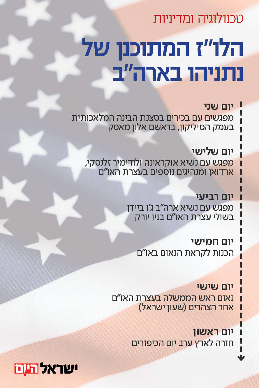 הסיור שלו בארה"ב, השיחה המתוכננת עם הטייקון הפופולרי אילון מאסק, המפגשים עם ביידן, זלנסקי, ארדואן ומנהיגים אחרים, וכמובן הנאום באו"ם - מעמד החביב עליו במיוחד - צפויים להחזיר לנתניהו קצת צבע ללחיים, להשכיח במעט את הרפורמה המשפטית, לדחות בכמה ימים את סיבוכי חוק הגיוס ולדחוק לצד את הדרישות של בן גביר.