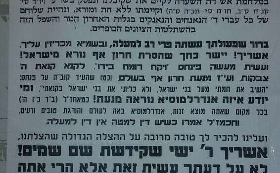 למדו את הלקח? כרוזים המשבחים את ישי שליסל, מי שדקר למוות את שירה בנקי בת ה-16 ופצע חמישה אחרים במצעד הגאווה בירושלים, נתלו בבני ברק ובירושלים.