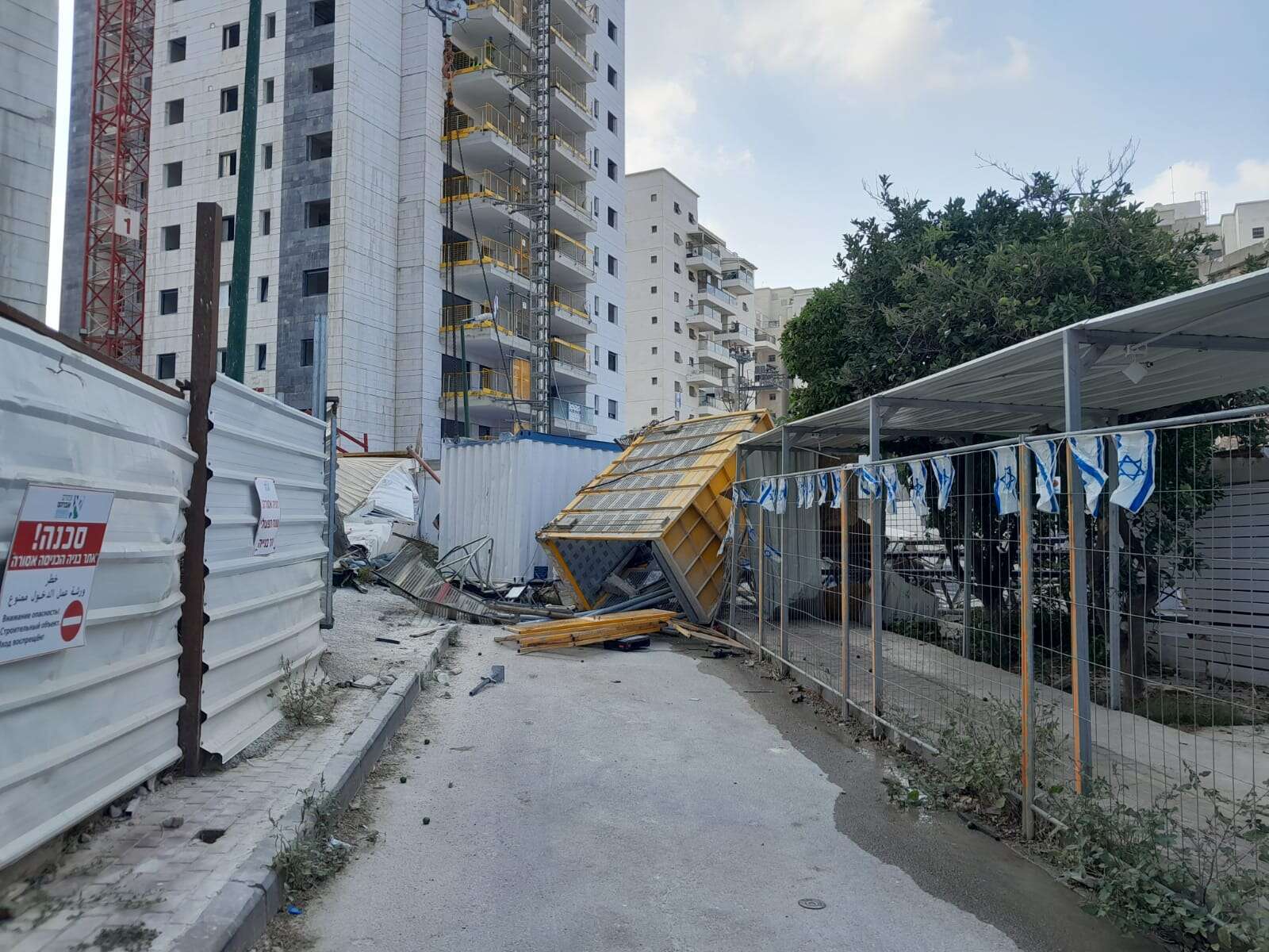בתאל ז'נט חבקוק, חובשת באיחוד הצלה: "לדברי העובדים במקום, מעלית משא קרסה על קראוון (מכולה) של מגורי העובדים והקראוון נפל לחצר מבנה. בשלב זה ישנם שני נפגעים ללא הכרה שעדיין לכודים. כוחות הכיבוי פועלים לחילוצם".