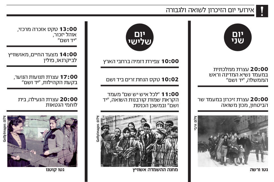 אירועי יום הזיכרון יעמדו השנה בסימן התנגדות יהודית במלאת 80 שנה למרד גטו ורשה. אלו הטקסים והעצרות המרכזיים שיתקיימו ברחבי הארץ: