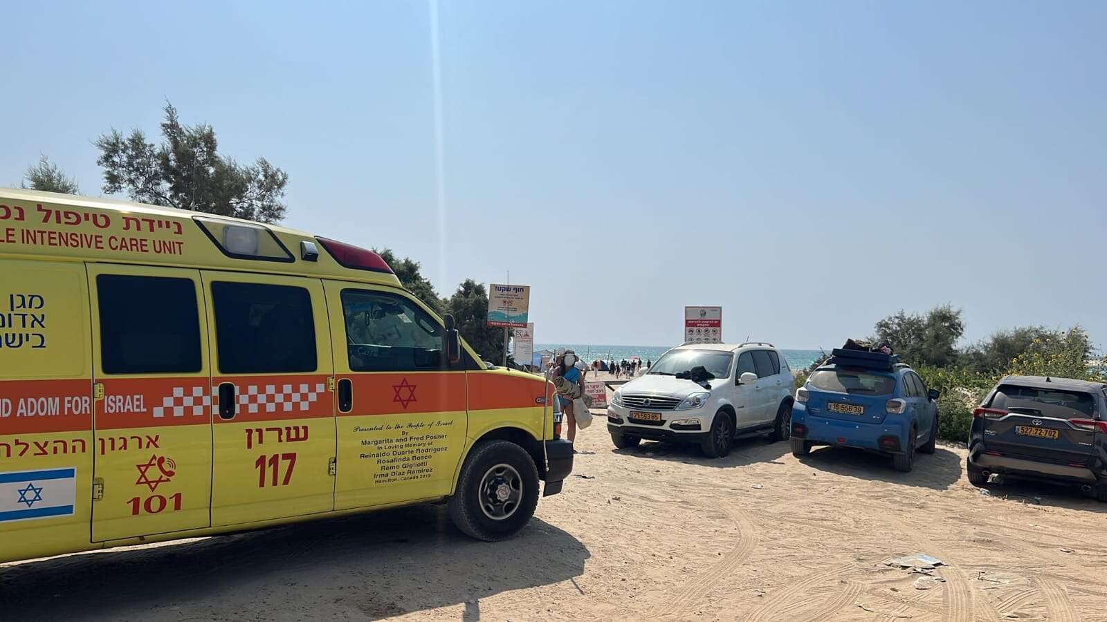 פרמדיק מד"א עמית דקל והחובשים דניאל גיאת ואביב קברוסי סיפרו: "ראינו את הגבר שוכב על קו החוף כשהוא הכרה. סיפרו לנו שאזרחים משו אותו מהמים. הענקנו לו טיפול רפואי שכלל הרדמה והנשמה ופינינו אותו בניידת טיפול נמרץ של מד"א לבית החולים כשמצבו קשה ויציב."
