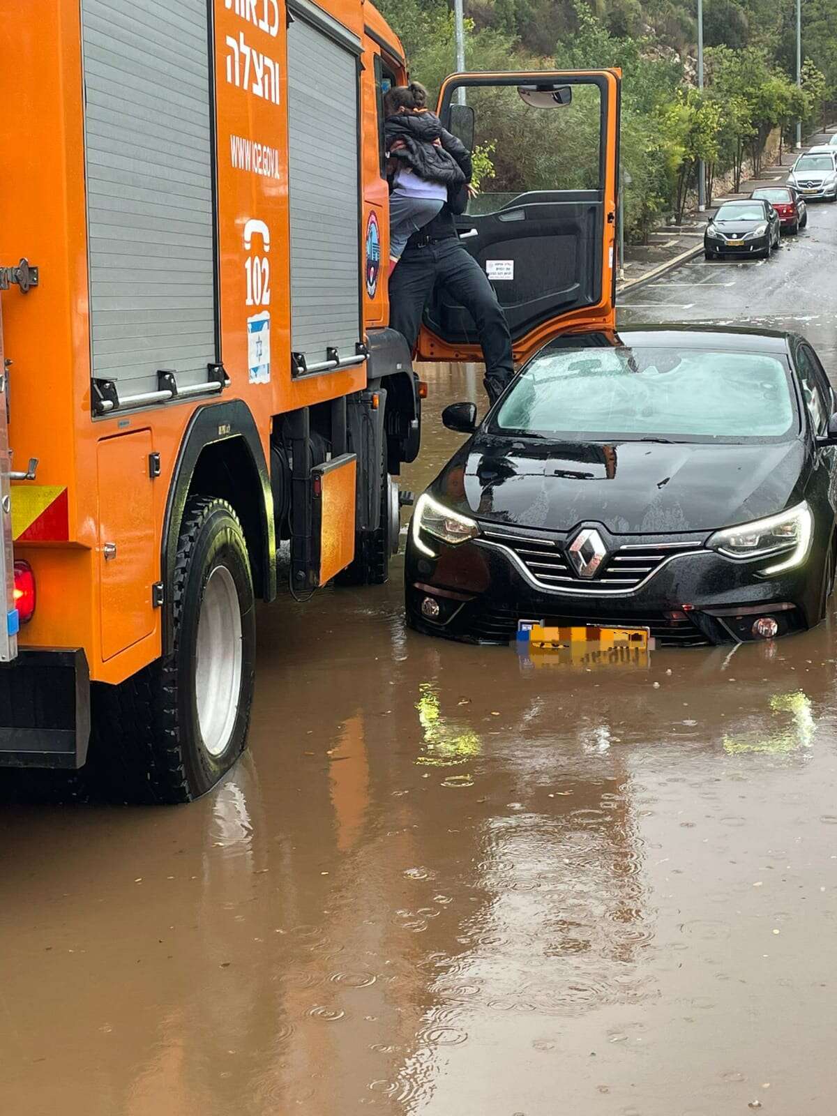 בנוסף על כך, שלושה מבוגרים ושני ילדים בני משפחה אחת חולצו על ידי כוחות כיבוי אש מרכבם לאחר שזה נקלע להצפה ברחוב דרייפוס בחיפה. לא היו נפעים באירוע.
