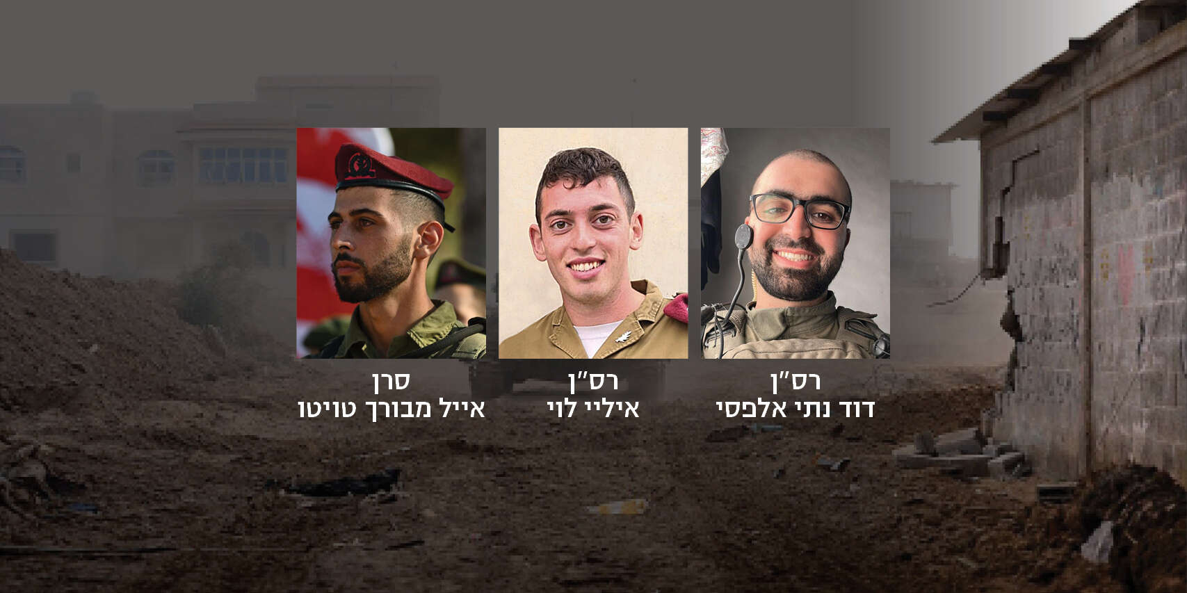 צה"ל התיר הערב (שני) לפרסם את שמותיהם של שלושה קצינים בגדוד 202 של הצנחנים שנפלו מפגיעת נ"ט בבית בגזרת חאן יונס.