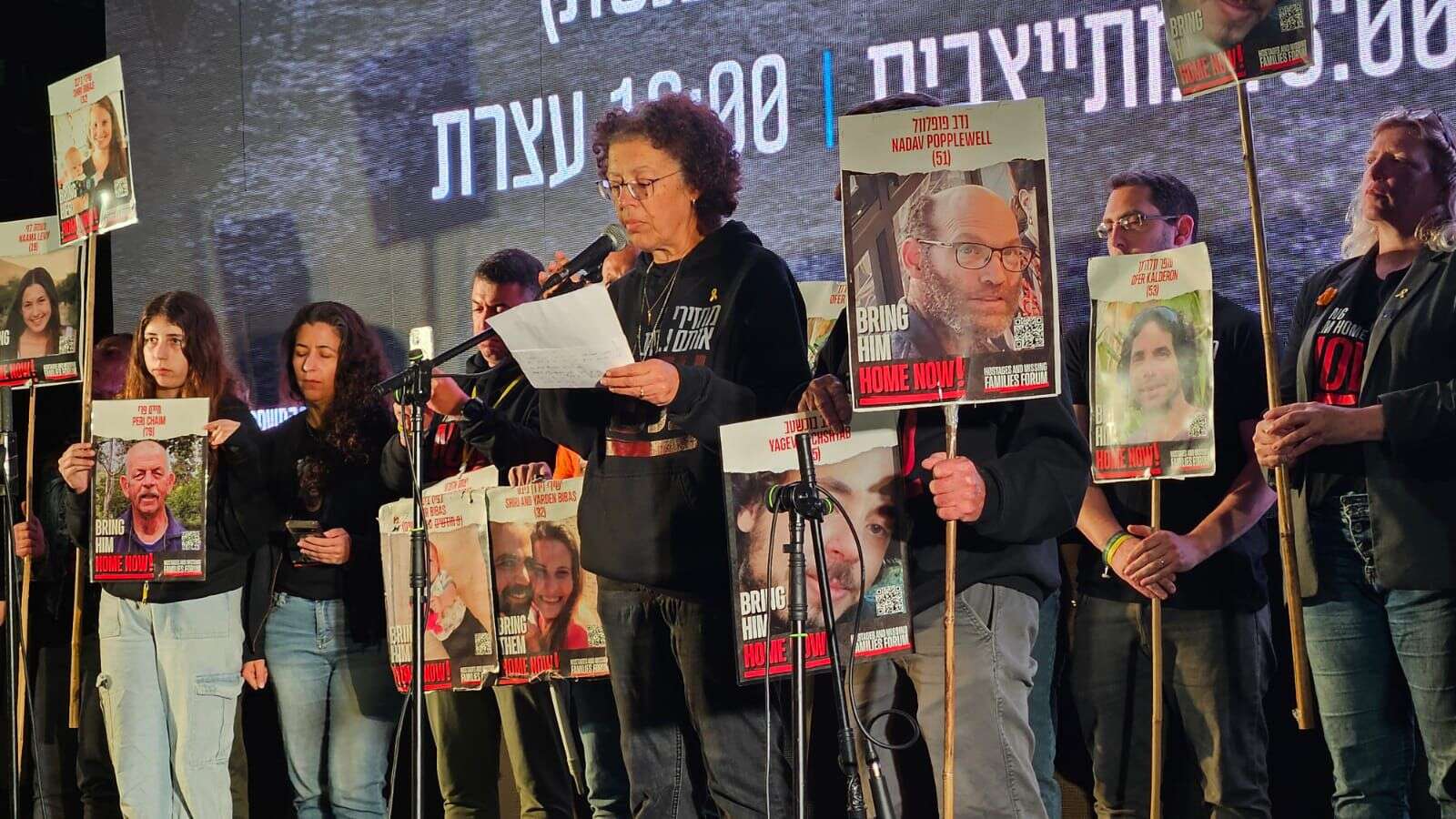 בעצרת של מפוני ניר עוז בקריית גת, לציון חצי שנה לשבעה באוקטובר דיברו עדינה משה ויגיל יעקב ששוחררו מהשבי בעסקת החטופים. "כשביקשו שאדבר היום אמרתי לא. מאז שהודיעו לנו שאבא שלי נרצח הרגשתי שאין לי יותר מה להגיד", אמר יגיל בעצרת. "אבל אחרי ששמעתי על אלעד, הבנתי שאני חייב לדבר. שמגיע לכולנו סוף אחר. די! זה יותר מדי זמן! אין יותר זמן!