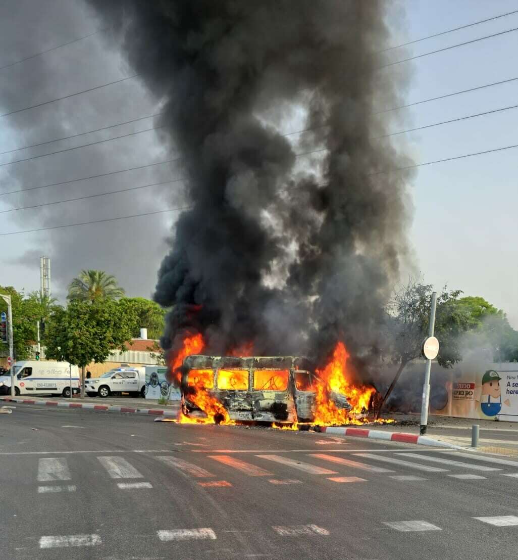בסביבות השעה 06:30 נשמע קול פיצוץ חזק באזור חולון. מיניבוס הסעות, שהיה ריק מנוסעים פרט לנהג, עלה באש.