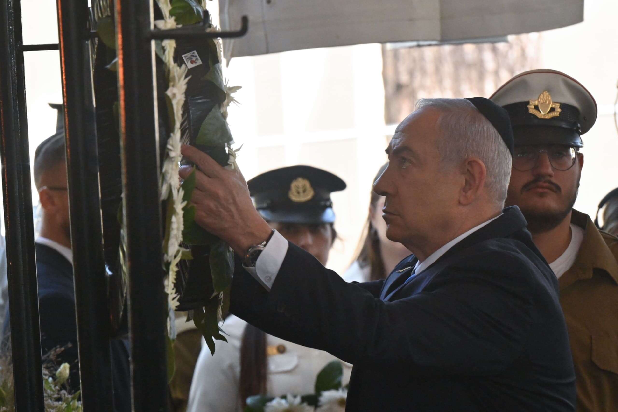 ראש הממשלה בנימין נתניהו אמר בנאומו כי ישראל לא תרפה עד שתשיג את המטרה של המלחמה עד תום. "אנחנו בעיצומה של מלחמה קיומית, ארוכה וקשה שגובה מאיתנו מחירים כואבים. נמשיך לרדוף את המרצחים ושולחיהם עד חורמה. בזכות הלוחמים והלוחמות המעולים שלנו, אנו עומדים יחד מול אויבינו שמבקשים להשמידנו. בשמחת תורה אשתקד עברנו אירוע מחריד בסדר גודל תנ"כי. שפת אנוש אינה יכולה לתאר את עומק הזוועה. את ההתעללות מקפיאת הדם, את החטיפה של אזרחים חפים מפשע מבתיהם. השבנו מלחמה וכך אנחנו עושים מאז ועד היום".