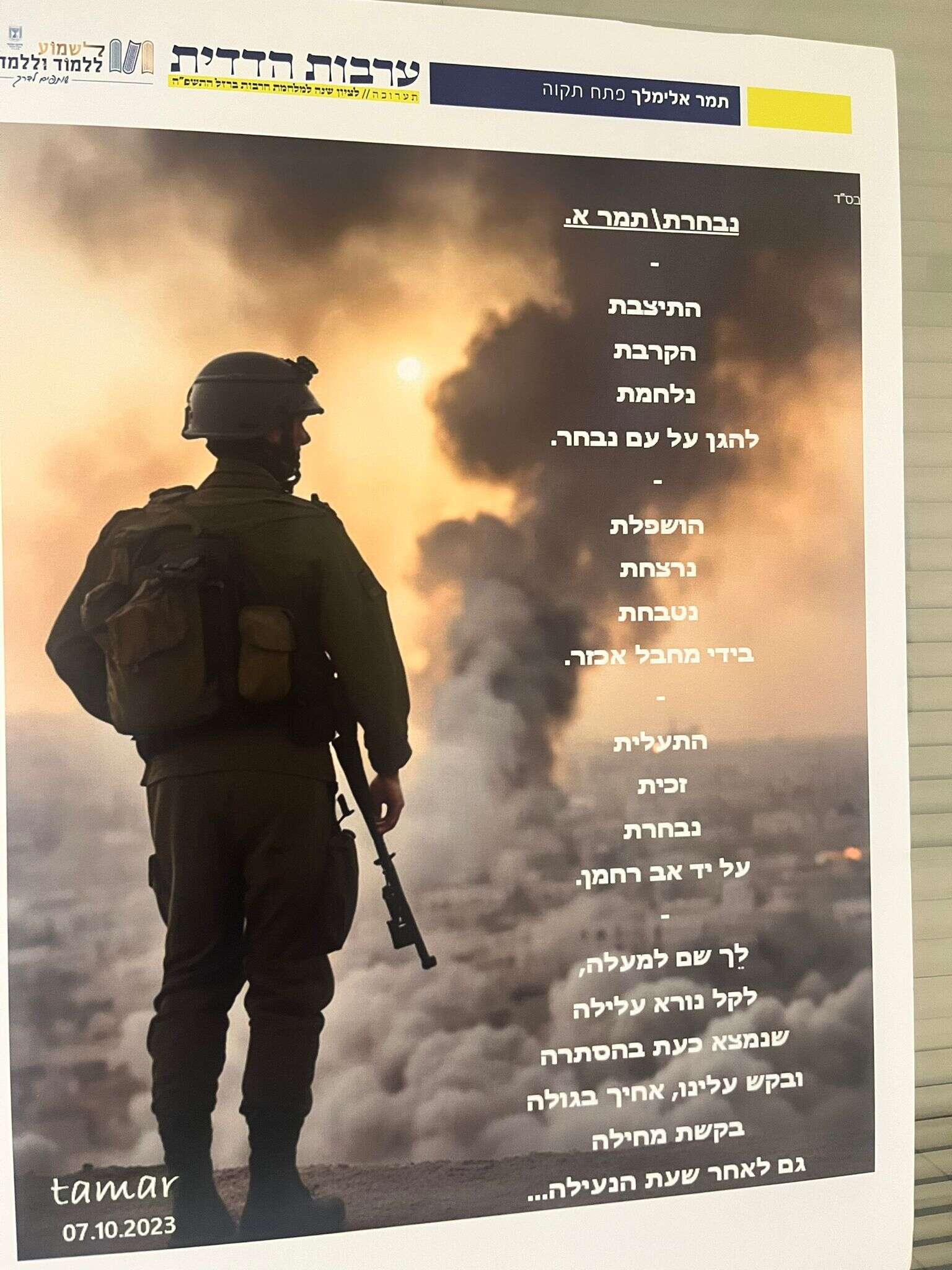 לצד הביקורת הרבה על השוויון בנטל המלחמה ומאבק המגזר החרדי בגיוס בני הישיבות, במערכת החינוך החרדית על עובדיה ציינו יחד עם כלל האומה הישראלית את יום השנה למלחמת חרבות ברזל, ועשו זאת בתערוכת אמנות שהוקדשה לנושא - בסימן ערבות הדדית.