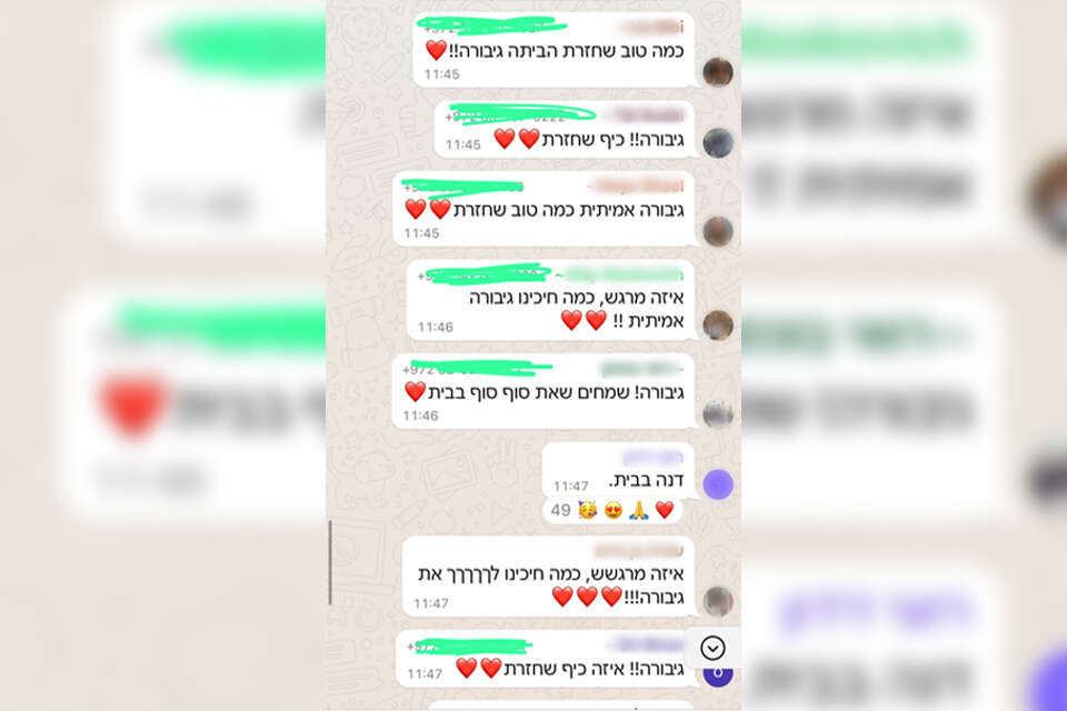 בין ההודעות נכתב: "כמה טוב שחזרת הביתה", "גיבורה", כמה טוב שחזרת".