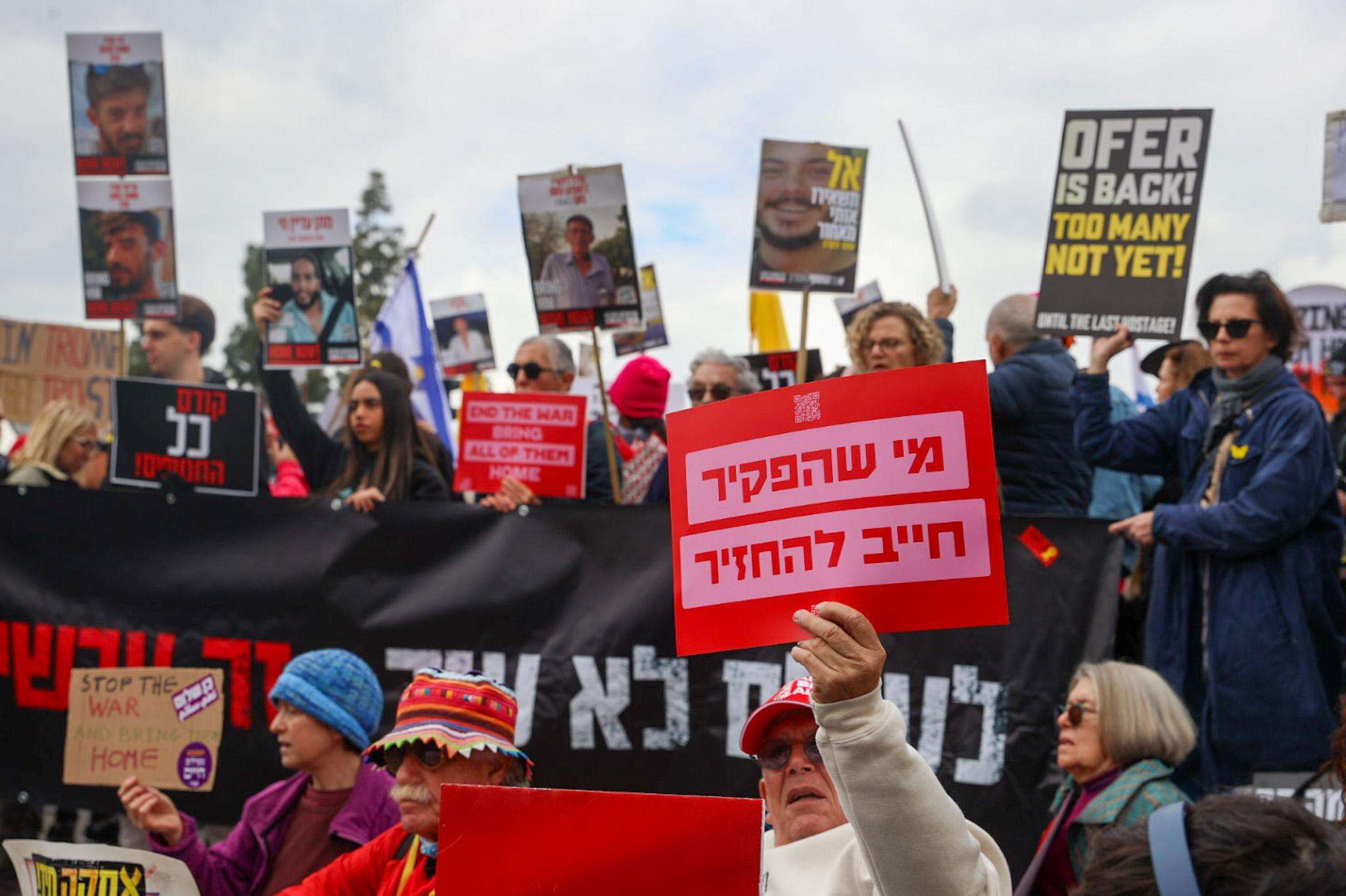שעות ספורות לפני כן, חסמו בני משפחות חטופים את כביש מספר 1 לתנועה. הם הדליק רימוני עשן ונשאו את השלטים שקוראים לשחרור מיידי של כל החטופים.