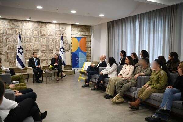 נשיא המדינה יצחק הרצוג ורעייתו מיכל קיימו היום (ב') מפגש מיוחד בבית הנשיא עם משרתי ומשרתות מילואים ונציגי תוכנית "עמית" של משרד הביטחון, שמטרתה לסייע למשרתים לחזור לשגרת חייהם האזרחית לאחר שירותם במלחמת "חרבות ברזל".
