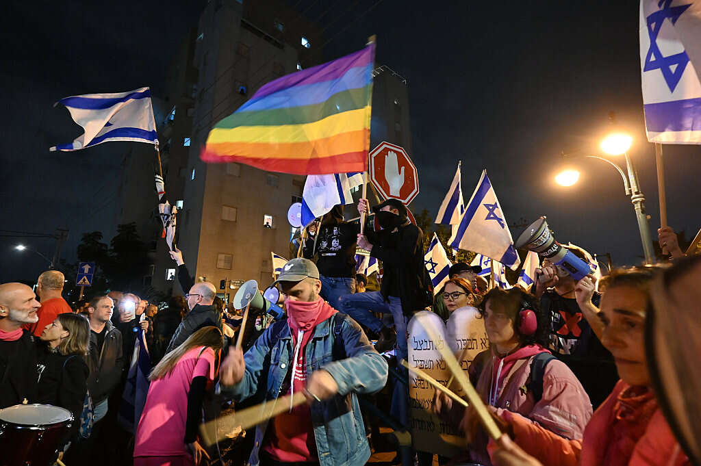 הפגנה נגד הרפורמה המשפטית מול ביתו של גפני בבני ברק // צילום: ברק דור