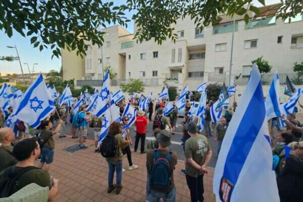 אנשי מחאת המילואימניקים אחים לנשק הגיעו הבוקר לביתו במודיעין של המשפטים יריב לוין, במחאה על הרפורמה.