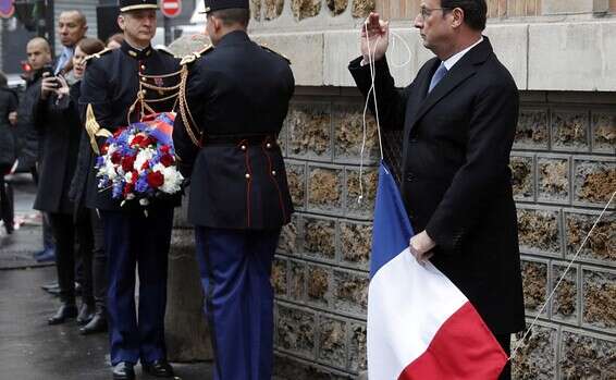 הולנד חשף גם לוחות לזכר הקורבנות שנהרגו במסבאות ובמסעדות בפאריס ובאולם הקונצרטים הבטקלאן, שנפתח אתמול מחדש עם הופעה של הזמר סטינג. הולנד שתק בטקס הקודר, בו בנו של מנואל דיאס, פורטוגזי במקור, פנה אל קהל ואמר שאביו היה "הוכחה חיה לכך שהשילוב בצרפת הוא אפשרי והכרחי".
