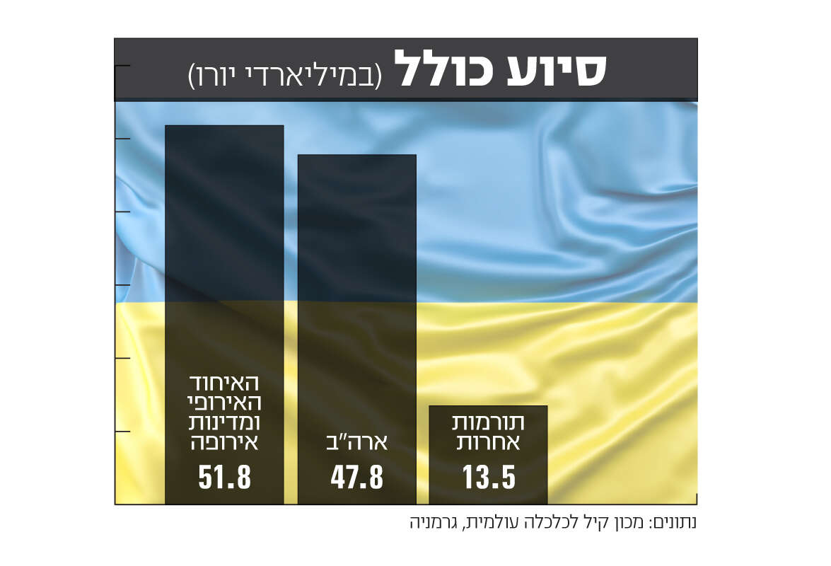 למרבה השמחה, אוקראינה לא לבד. לפי מכון קיל לכלכלה עולמית, סכום ההתחייבויות הבינלאומיות הגיע ל־113 מיליארד יורו (ראו פירוט בגרף).