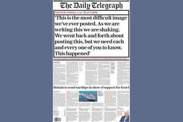 בבריטניה, כמה עיתונים גדולים הקדישו את הכותרות לחשיפות הזוועתיות מיישובי עוטף עזה. ה"דיילי טלגרף" בחר שלא לפרסם תמונות שהגיעו אליו מהעוטף ותחת זאת כתב במקום בו אמורה להיות משובצת התמונה: "זו התמונה הקשה ביותר שאי פעם הפצנו. אנחנו רועדים בעוד אנו כותבים את זה. התלבטנו שוב ושוב אם לפרסם את זה, אבל אתם חייבים לדעת שזה קרה".