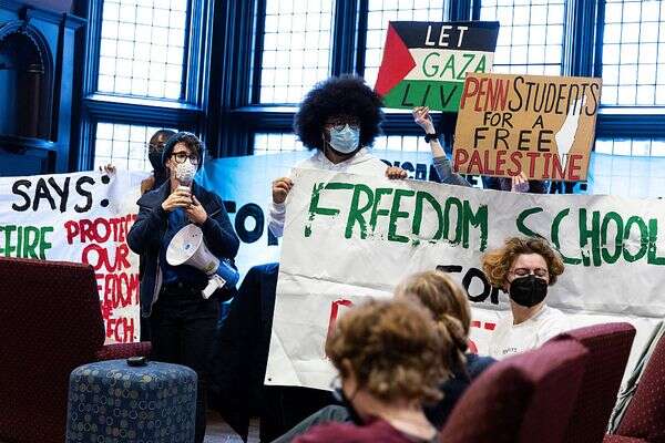 במקביל, אוניברסיטת פנסילבניה השעתה את אחוות הסטודנטים "דלתא סיגמא פי" ל-18 חודשים, לאחר שחבריה תלו פוסטרים שלעגו לכרזות החטופים הישראלים. האחווה תידרש לעבור "תהליך של שינוי תרבותי" כתנאי לחידוש פעילותה.