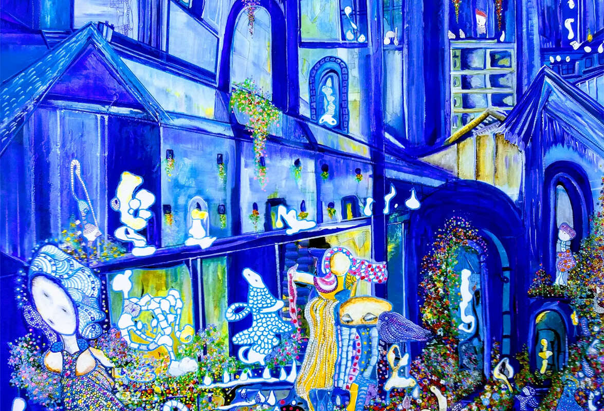 בפעם הראשונה שראיתי את עבודותיה של מלי אלבז אלמנדין, חשתי כי הן עוסקות בעולם דמיוני או מגיעות מכוכב אחר. ציוריה מלאים צבעוניות עזה, שפע וריבוי פרטים עד שנדמה כי כל ציור מכיל בתוכו כמה וכמה ציורים שונים. אך התקרבות ובחינת הפרטים הקטנים מראה את עוצמת החיים שהתקיימו וצמחו בפריפריה, ואותם אלבז אלמנדין מציגה דרך האור השופע, במרחב הים־תיכוני, בקסם הלבנטיני. חיים וזיכרונות מלאי קסם והיקסמות שנקרעת בין מסורת להווה, בין עתיק למתחדש. הציורים כה מנוגדים ו"זרים" בצבעוניותם לקלישאות על הפריפריה האפורה והמשעממת, ומאפשרים לקרוא מחדש את החיים היפים שהתקיימו בקצה השמיים ובסוף המדבר, גם בעיירות הפיתוח.