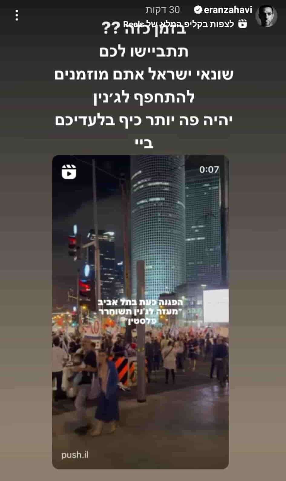 טעינו? נתקן! אם מצאתם טעות בכתבה, נשמח שתשתפו אותנואני שמח למחוק את טיעוני כלפי ערן זהבי היקר, שהוא בעד חופש ההפגנה ונגד המבקשים לפגוע בישראל. כמותו שנינו מזדהים באהבה עמוקה לישראל וביום-יום למכבי ת״א. הוא אחד מ-4 הגדולים בכל 78 השנים שאני צופה (מגיל 7) במכבי - שייע גלזר, גיורא שפיגל, אבי נמני וערן זהבי.