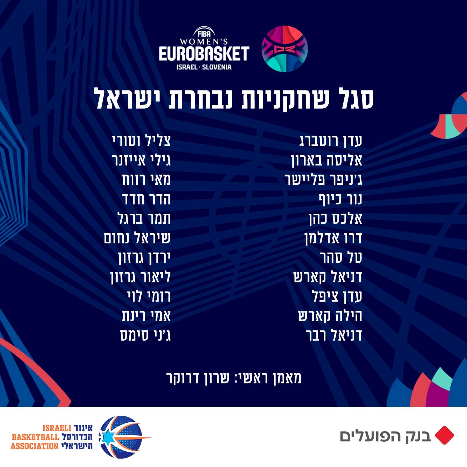מאמן נבחרת הנשים שרון דרוקר ועוזריו רועי לזר ונתנאל דהן, קבעו את הסגל הרחב של הנבחרת לקראת אליפות אירופה שתתקיים החל מה-15.6 בתל אביב.