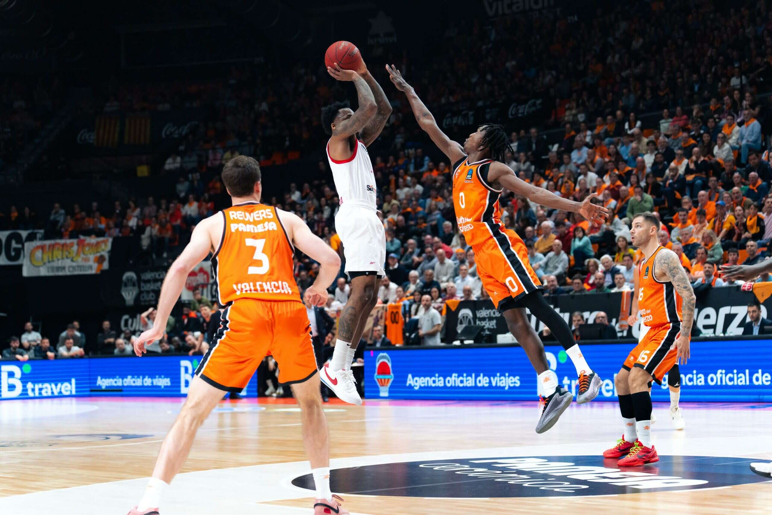 ועדיין – ולנסיה, עם ריווח מצוין וקליעה יציבה מבחוץ, צלפה לא פחות מ-7 שלשות ב-58.3% עד הירידה להפסקה. מנגד, האדומים סיימו עם המחצית הראשונה עם 85.7% ל-2 (18/21) ורצו 2:9 לקראת סוף המחצית כדי לרדת לפיגור 45:44 מינימלי בהפסקה.