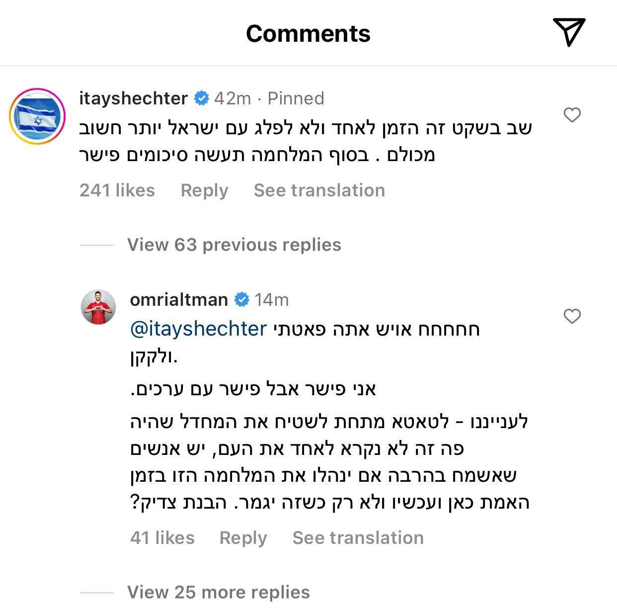 האחרון העלה פוסט פשוט בו כתב: "מברך על האחדות, עכשיו צריך לנצח" והוסיף אימוג'י של דגל ישראל. את אלטמן זה הצליח להרגיז מאוד.