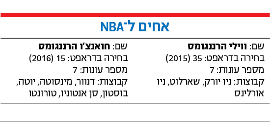 לאחים ווילי וחואנצ'ו הרננגומס יש ביחד 14 עונות ב־NBA, שבע לכל אחד, אבל הם העבירו אותן בתשע קבוצות שונות, תמיד בנפרד.