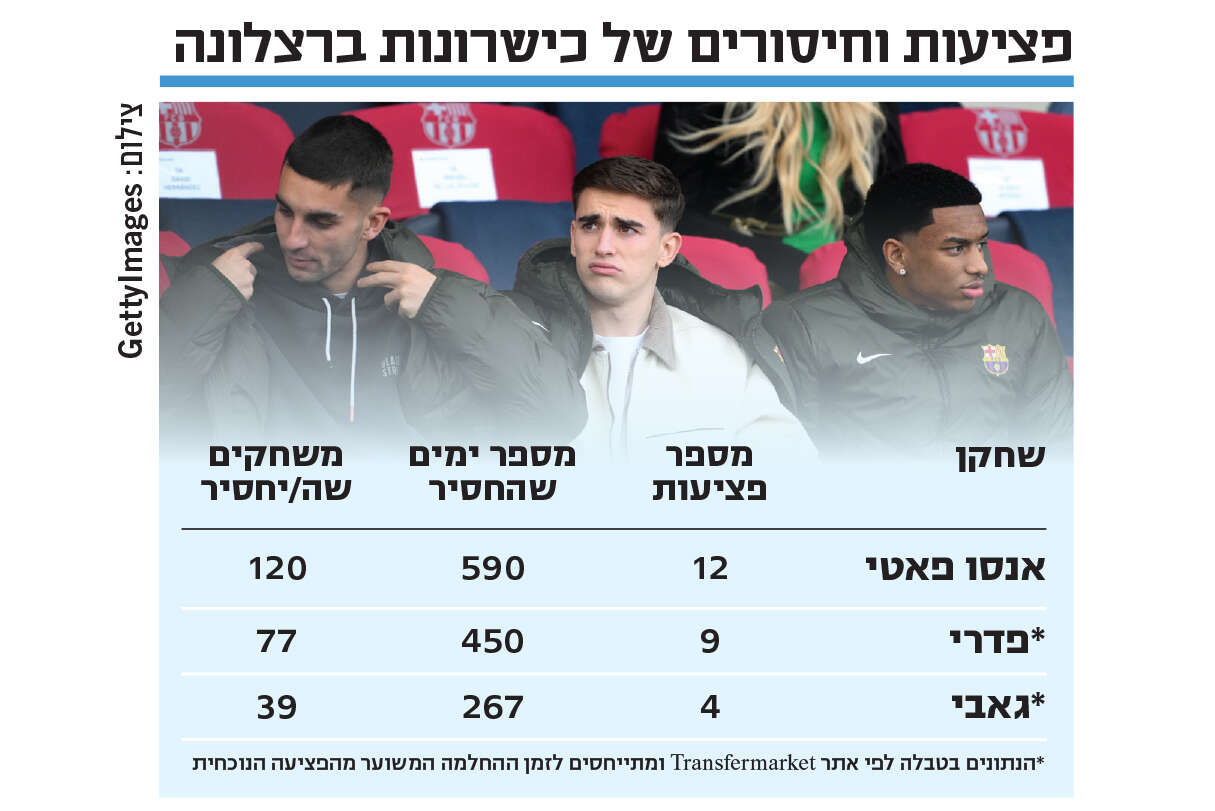 שלושה מתוך הכישרונות הכי גדולים שצמחו במועדון לאחרונה סבלו וסובלים גם כעת מפציעות ארוכות וקשות, שמעוררות חשש גדול להתפתחותם העתידית: אנסו פאטי (המושאל לברייטון), גאבי ופדרי. פציעה נוספת של האחרון מול אתלטיק בילבאו לפני עשרה ימים פתחה גל של דיונים וביקורות נגד בארסה, שייתכן כי פוגעת קשות בילדים שלה.