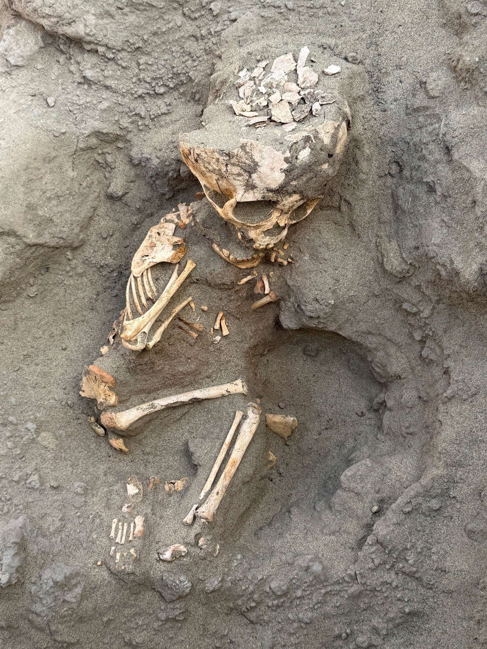 הצוות של מורו חשף גם את עצמותיהם של שלושה בני אדם בוגרים בין הקירות והבסיס של מה שהיה פעם מבנה בעל מספר קומות. ליד אחד מאותם עצמות אותרו גם מנחות, כשהוא עצמו היה עטוף במעין בגד או מצעים.