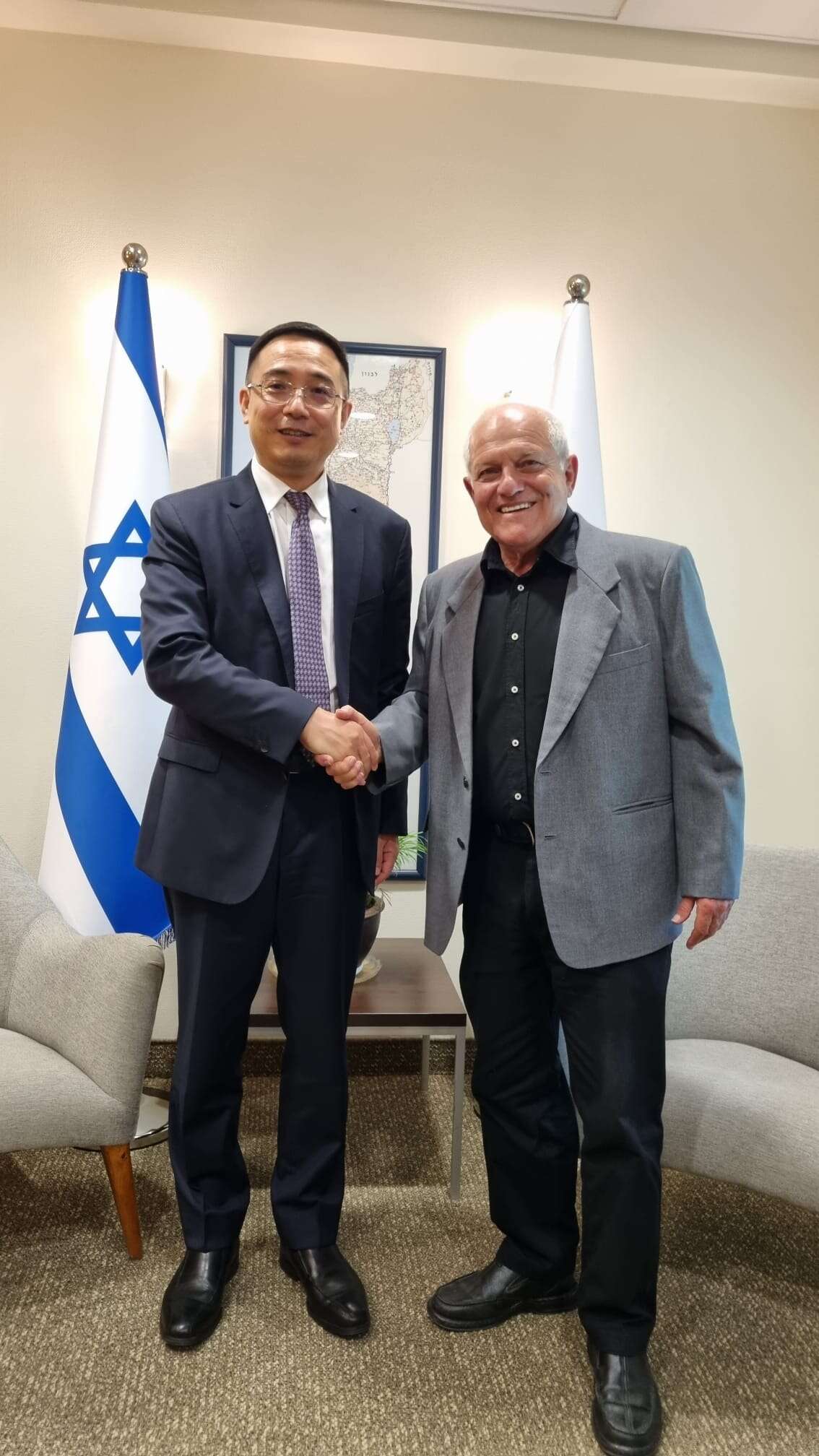 "נשבור שיאים". שר התיירות חיים כץ עם שגריר סין בישראל צאי רון, היום