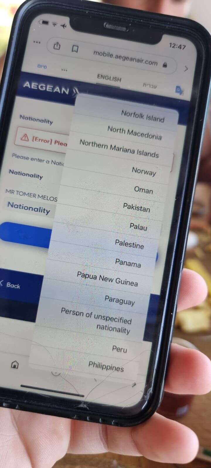 נוסעים ישראלים שעשו את דרכם מיוון לארץ שנכנסו לאתר האינטרנט של חברת התעופה היוונית אג'יאן במטרה לעשות צ'ק אין, גילו לדבריהם כי מדינת ישראל "נעלמה" מרשימת המדינות באתר – ושבמקומה הופיעה "פלשתין".