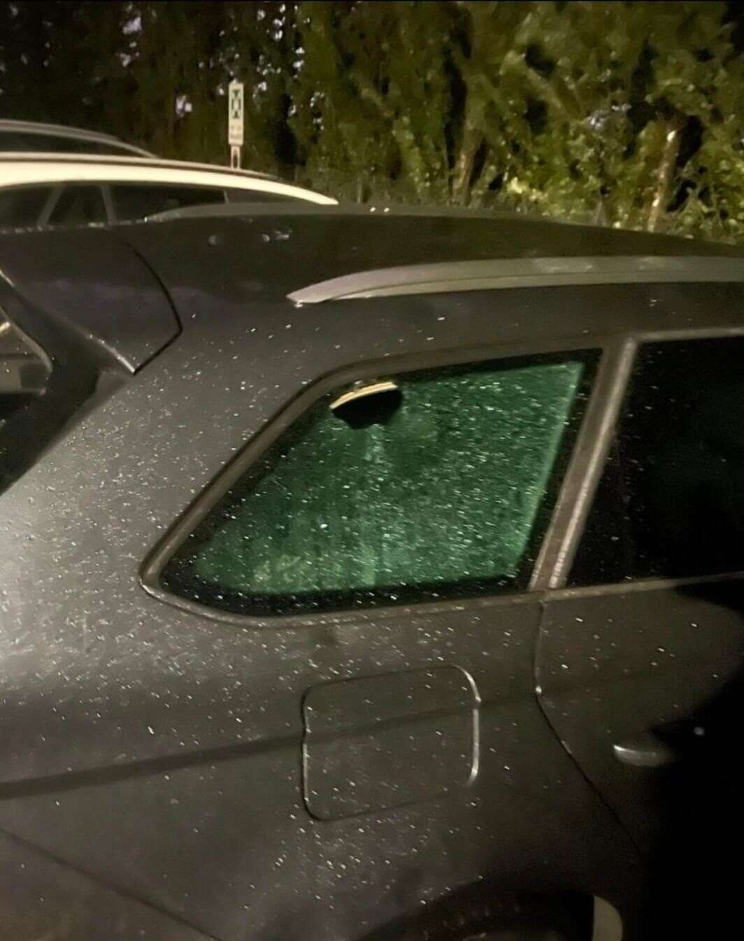 רכב שנפגע מברד באזור אגם גארדה שבאיטליה // צילום: יניב שמן - קבוצת הפייסבוק "צפון איטליה למטיילים"