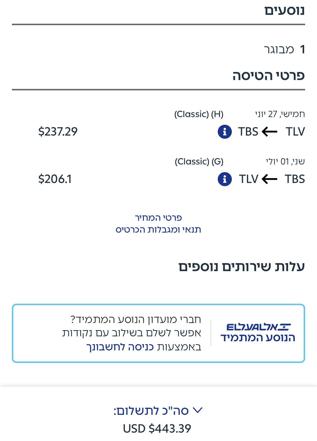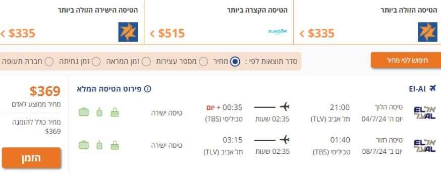 טיסת אל על לטביליסי דרך סיטונאי // צילום מסך