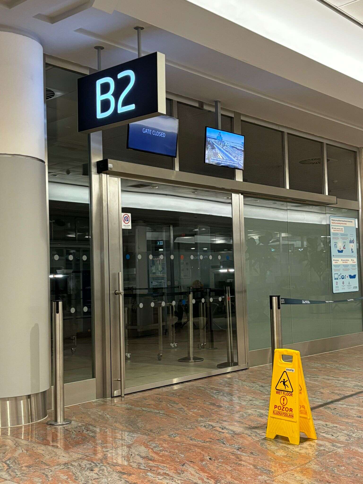 שער הטיסה הסגור בנמל התעופה בפראג // צילום: יובל ברוור